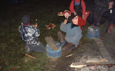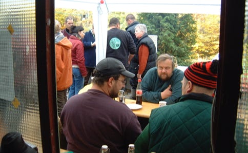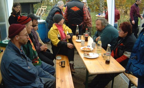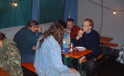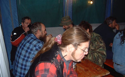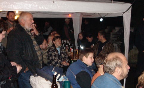 So wurde auf unserem Treffen auf laute Musik, Schlammkämpfe, “Miss-Big-Titts-Wahlen” usw. verzichtet. Stattdessen wurde mit anderen Treffenbesuchern gequatscht, man trinkt sein Bier und sitzt später am Lagerfeuer, um gemeinsam ein Liedchen anzustimmen.